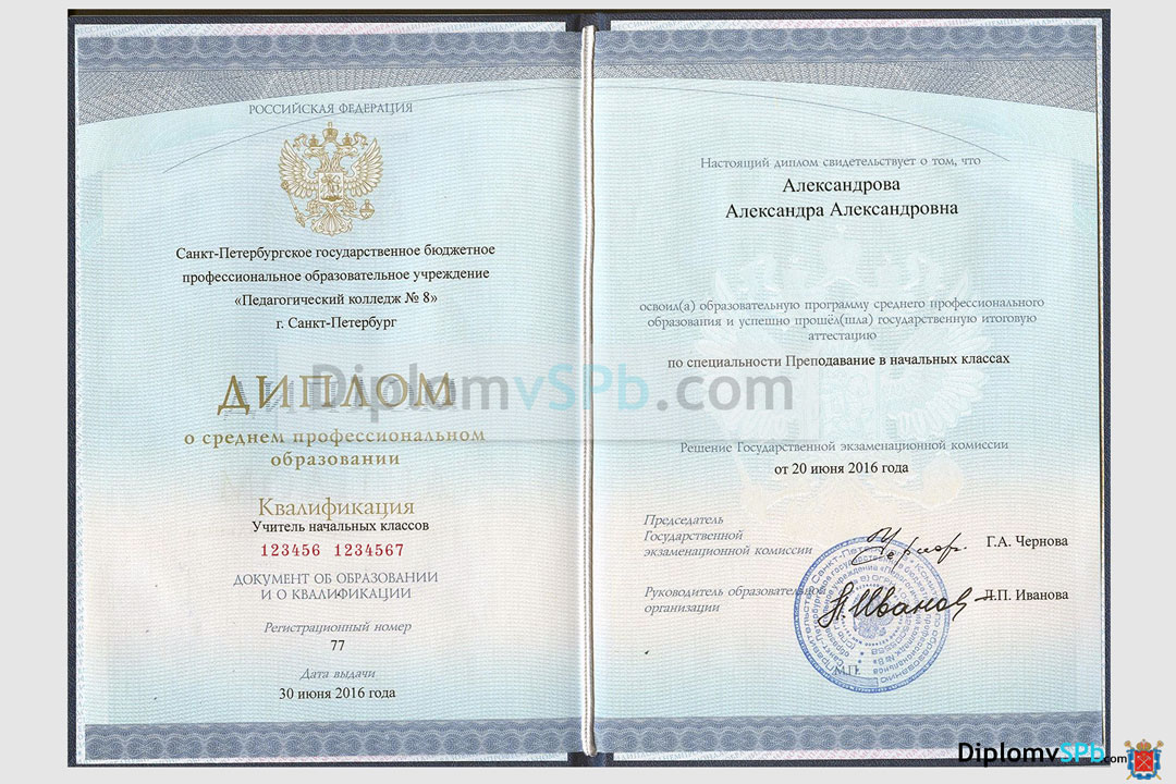 Ищите, где купить диплом нового образца в Санкт-Петербурге? Перелагаем Вам свои услуги. Диплом будет выполнен на настоящем бланке Гознак с учетом всех образовательных стандартов и требований к заполнению современных документов. В дипломе нового образца будет указаны Ваши персональные данные, сведения об образовательном учреждении, все дисциплины, предусмотренные при обучении по выбранной специальности с расчасовками и оценками, все курсовые, практики и выпускная квалификационная работа. Заверяется документ нужными подписями и оригинальной гербовой печатью учебного заведения, оттиск которой выполнен специальными чернилами («мокрая» печать).